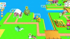 Farm Land är en ovanlig gård som ligger på tropiska öar. Du kan spela på mobila enheter som kör Android. Grafiken är förenklad, men de ser intressanta ut, de är ljusa och färgglada med bra detaljer. Röstskådespeleri, högkvalitativ musik är inte irriterande om du spelar länge.