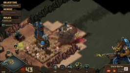 Chefen för din fraktion, en krigsherre med en banderoll, fungerar som en markör. Alla soldater i din armé följer honom och attackerar de påträffade fienderna och fiendens byggnader. Till en början kan detta kontrollschema vara lite ovanligt. Byggandet av byggnader, baracker för att anställa soldater och försvarsstrukturer leds av samma fanbärargeneral.